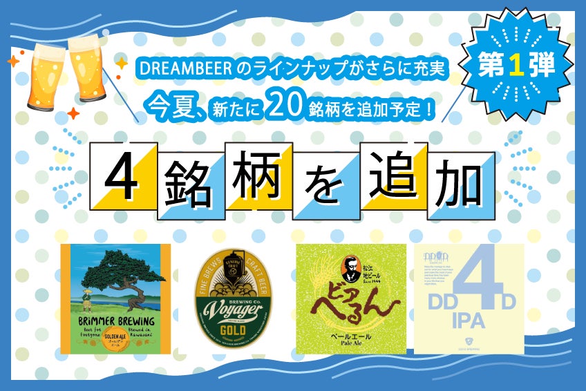 日本全国100銘柄以上のクラフトビールを楽しめるDREAMBEER 今夏に向け、さらに20銘柄を追加しラインナップを拡充! 第1弾として2022年6月1日に4銘柄を追加いたします