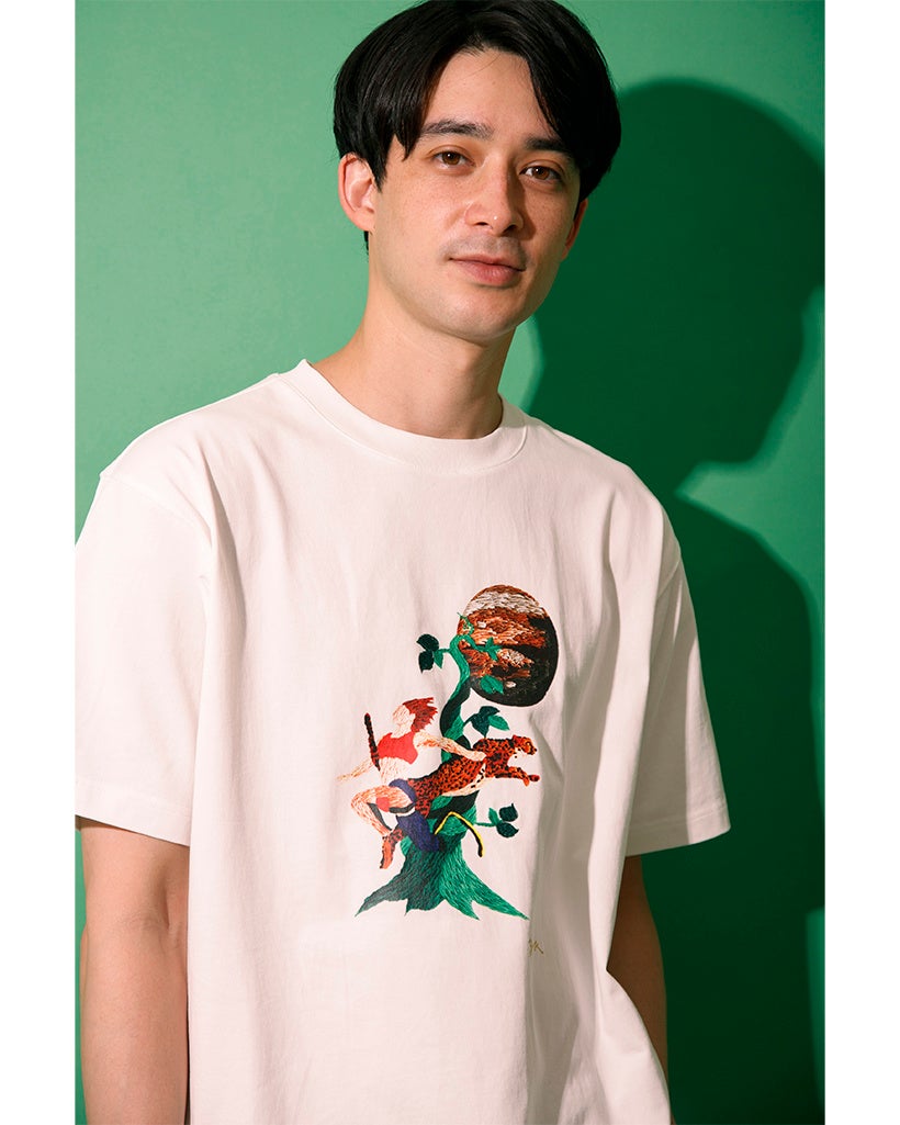 Tシャツは刺繍プリントに一部刺繍を施した、平面(プリント)と立体(刺繍)を楽しめる仕上がりに。ミリタリーシャツは背中と胸元にインパクトのある総刺繍を施した贅沢な1枚。ぜひこの機会にアーティスティックな1枚を取り入れて夏のスタイリングに新しい彩りを加えてみてください。