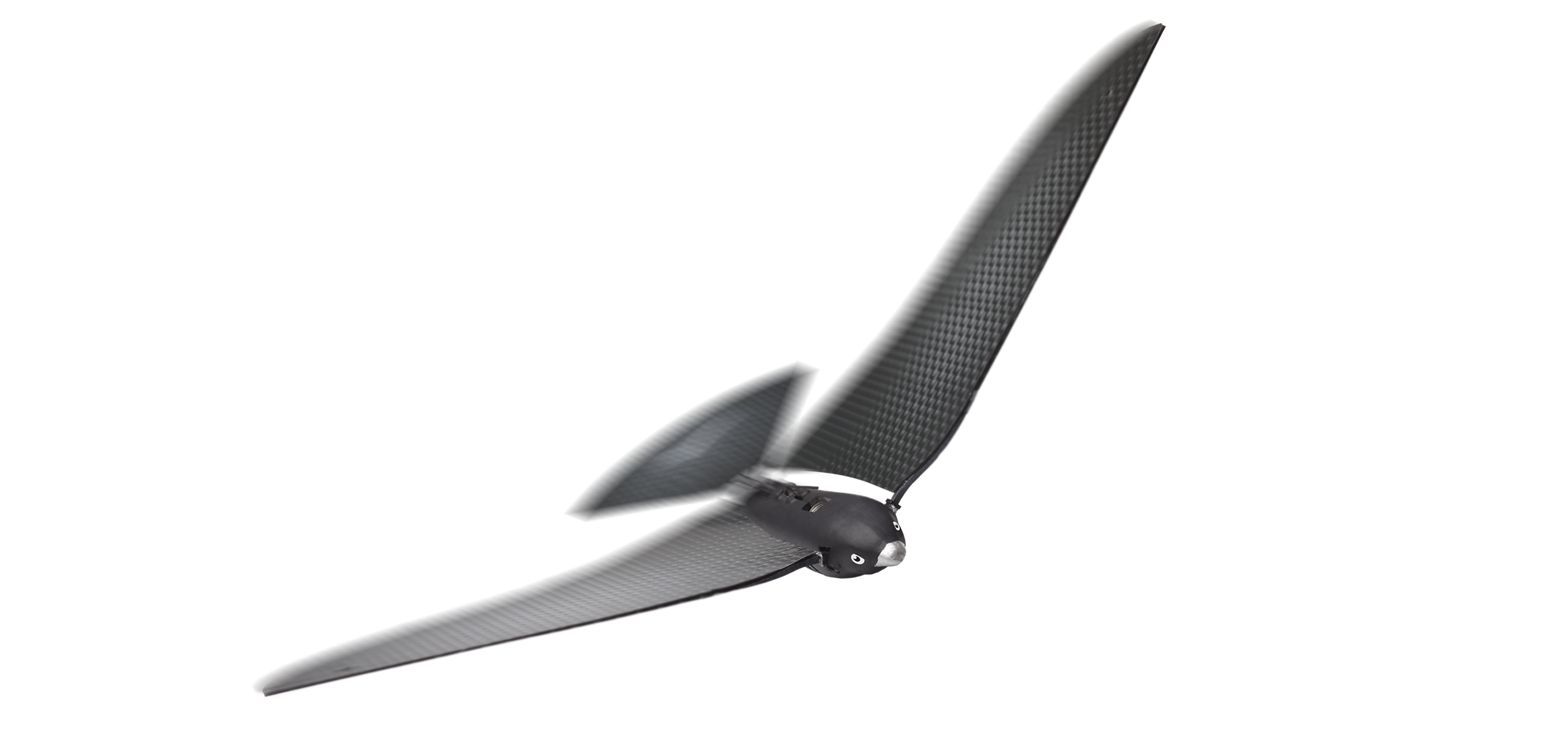 自然の生物の機能を模したバイオミティクス(生物模倣)と呼ばれる考え方に基づき開発され、柔軟性のあるプラスチックを使った本体はたった9.5g=100円玉たった2枚分しかありません。約150m範囲で通信可能でアルミラジエーターを備えたメインモーターは、機械的なノイズがほとんど聞こえず飛んでいる姿は本物の鳥と全く同じように見えます。