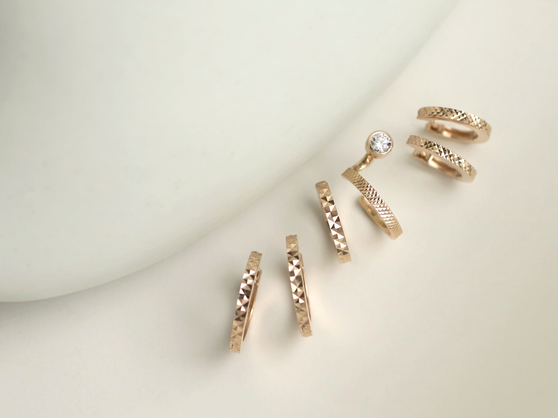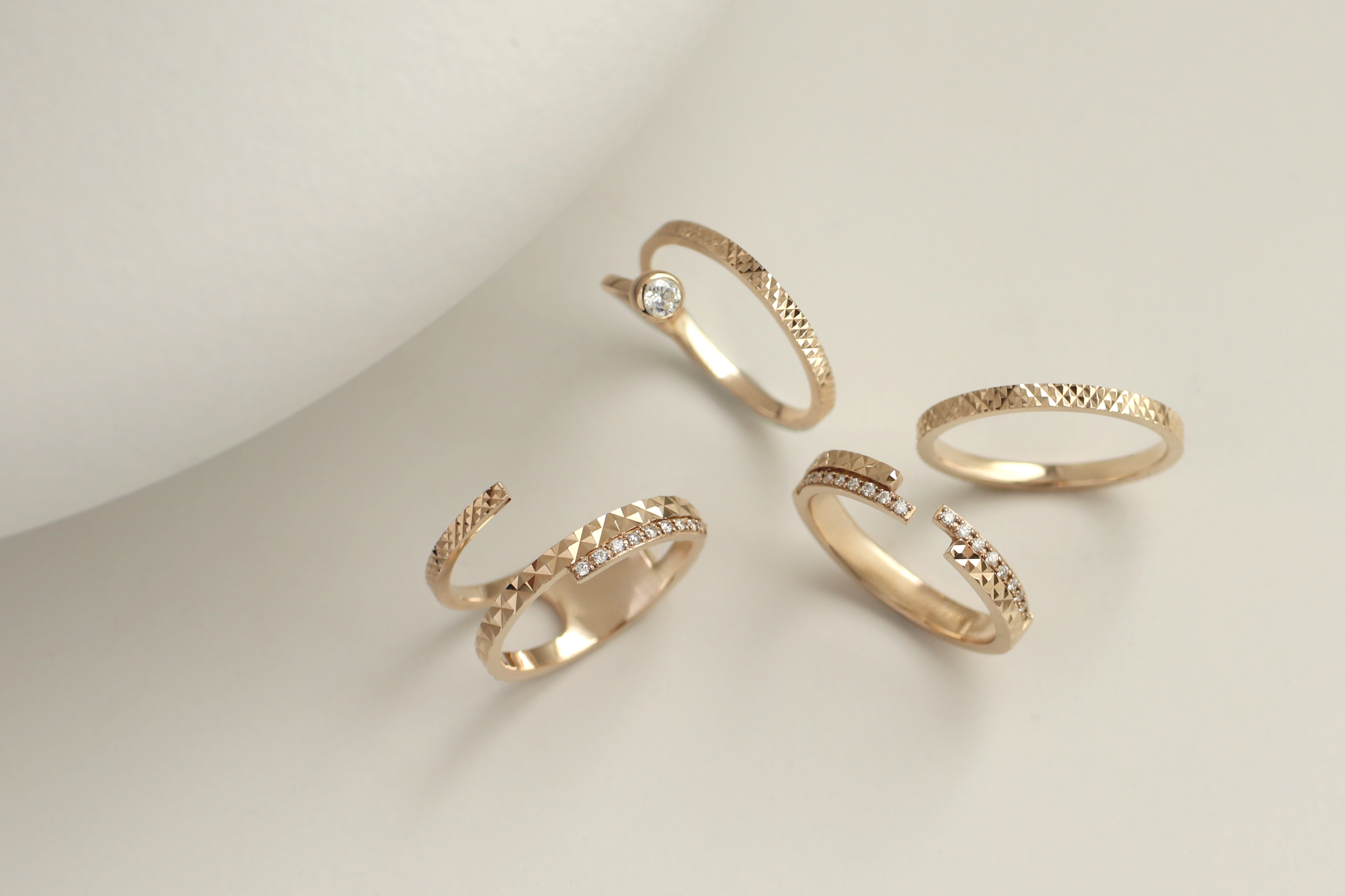 今回のロゼテンの新作は、贅沢な厚みのある地金に施されたカッティングが特徴。