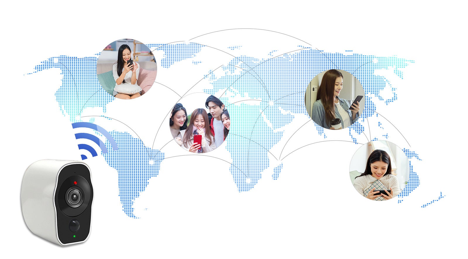 防犯カメラを複数端末で共有して、それぞれのスマホから録画を見たり操作できる。ご家族で、社員同士で、それぞれが違う場所にいたとしてもリアルタイムで映像を共有できます。