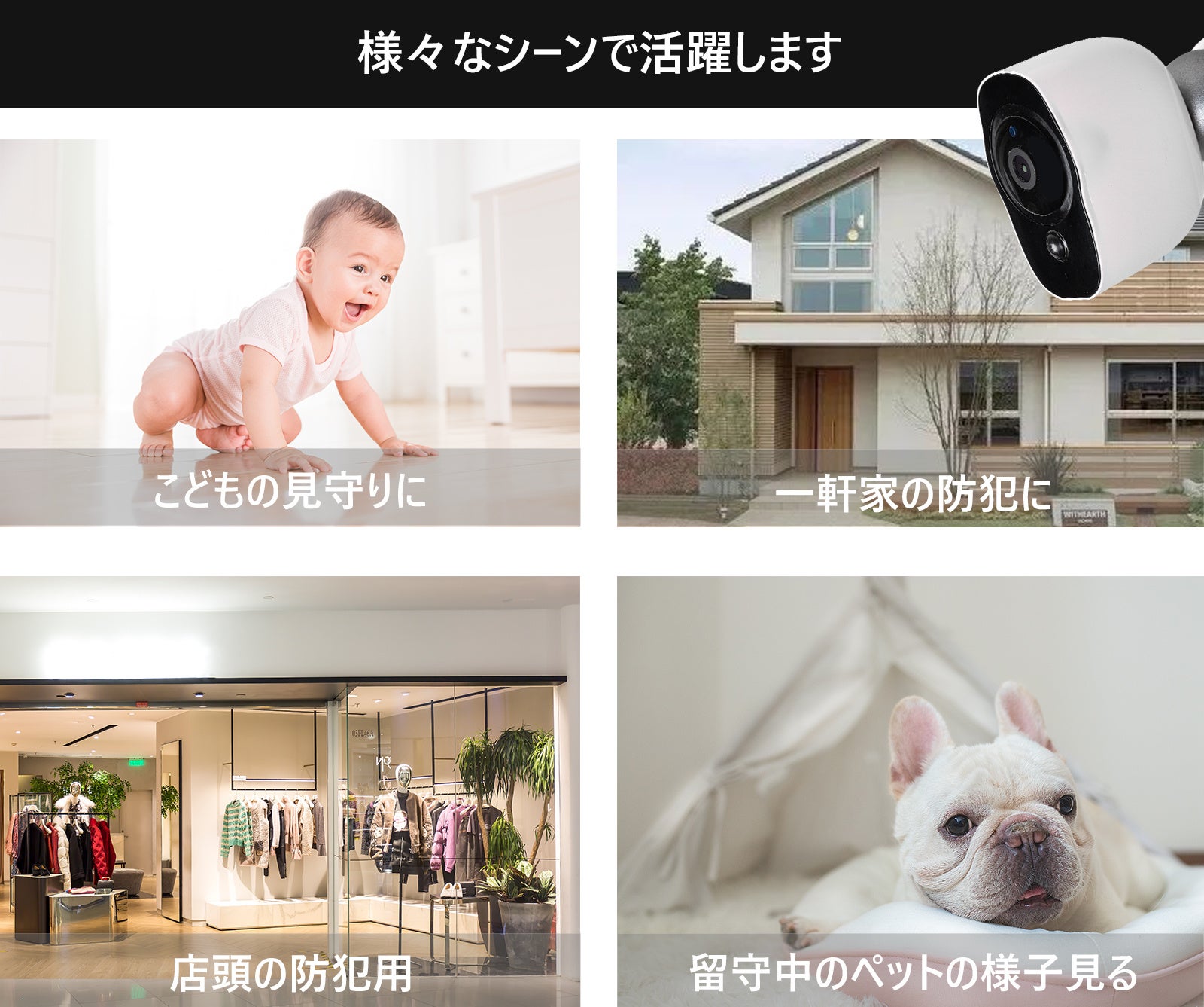 最大95日使用!工事も電源も不要!屋外でも使える、高機能ワイヤレス防犯カメラR4