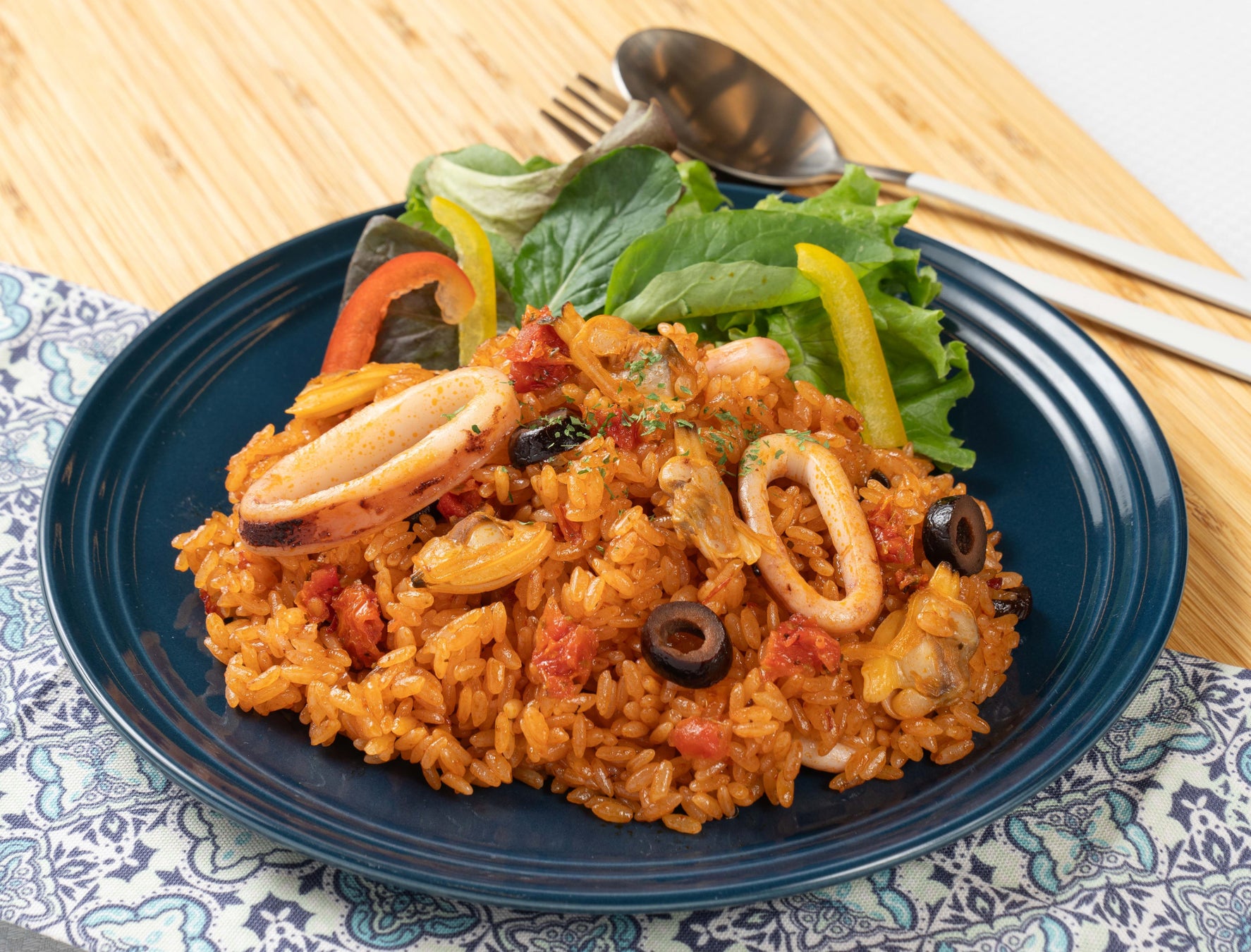 パエリアに似ているようで違う!弾力のある“もちもち”食感と、口の中で“パラっと”ほぐれる食感が楽しめます。