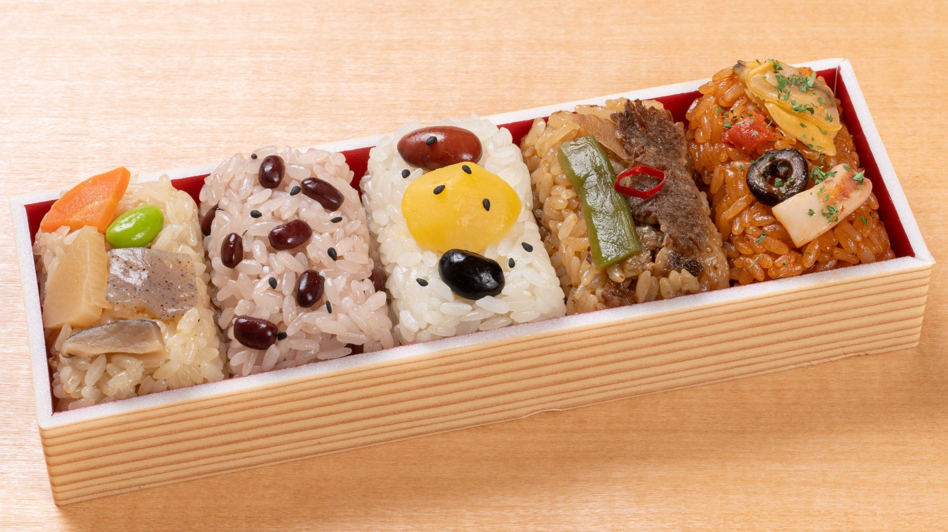 (赤飯・栗豆・五目・じゃこ・トマト)