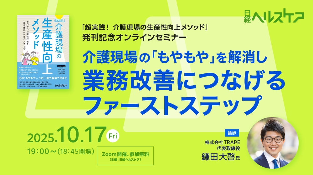 本セミナーは、2025年9月22日に発行された書籍『超実践!介護現場の生産性向上メソッド』の発刊を記念して行われるものです。