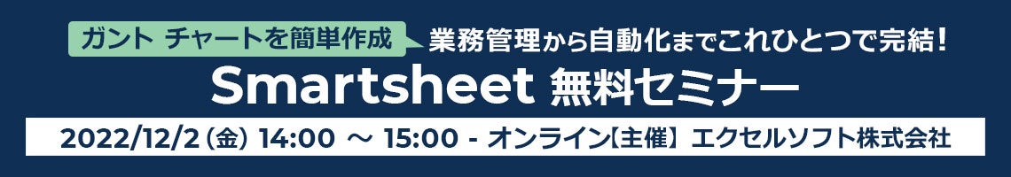 12/2 (金) DX を推進!ガントチャートを活用した業務遂行プラットフォーム Smartsheet 無料セミナー