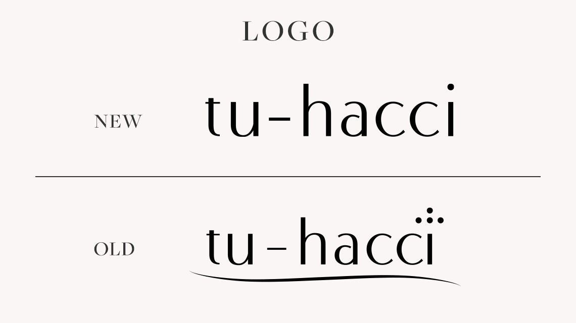 新たな「tu-hacci」ロゴは、これまで築いてきたお客様との絆を大切にすべく、初代ロゴの面影を残しつつ、より洗練されたデザインへ進化します。従来の装飾を取り払ったシンプルなデザインは、流行の変化に左右されない芯の強さと、お客様の望む美しさに寄り添う柔軟性を意図しています。