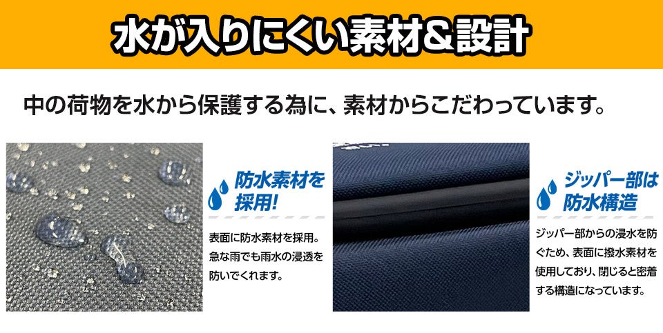 ジッパー部分も水が入りにくい仕様で作成しています。