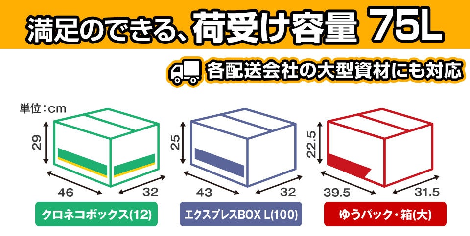 各配送業者の大型資材にも対応したサイズになっているので、安心して受け取りが可能です。