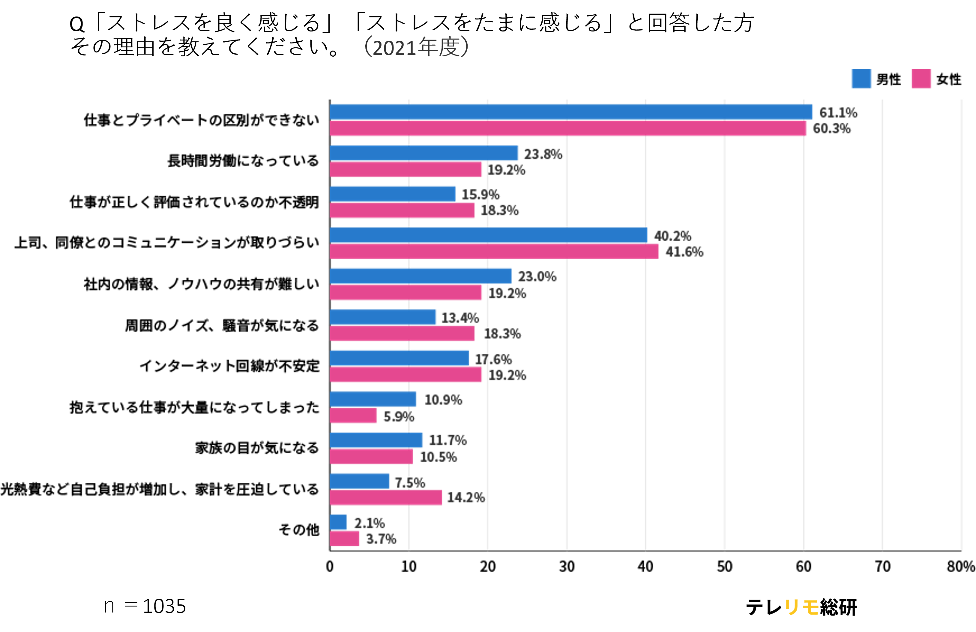 調査対象:全国20歳〜65歳のテレワーク/リモートワークを経験したことがあるワーキングパーソン男女1035名