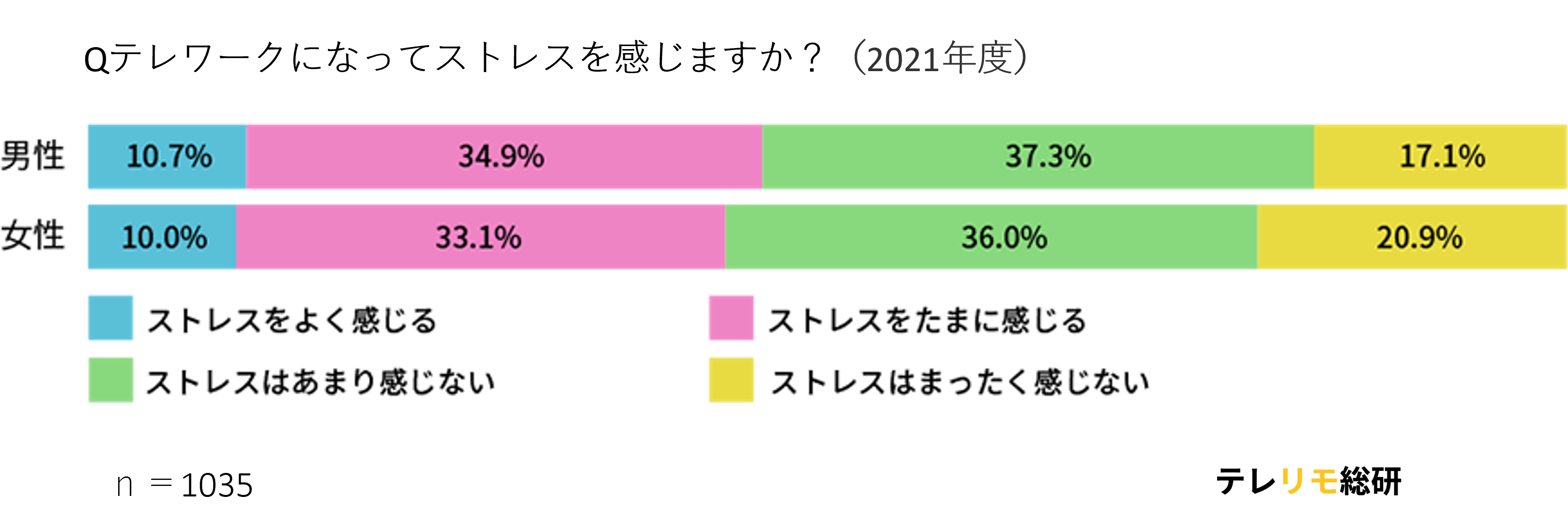 一方で、テレワークになってストレスを感じたかどうかを調査し、2020年と2021年の数値を比較してみたところ、以下のような結果となりました。