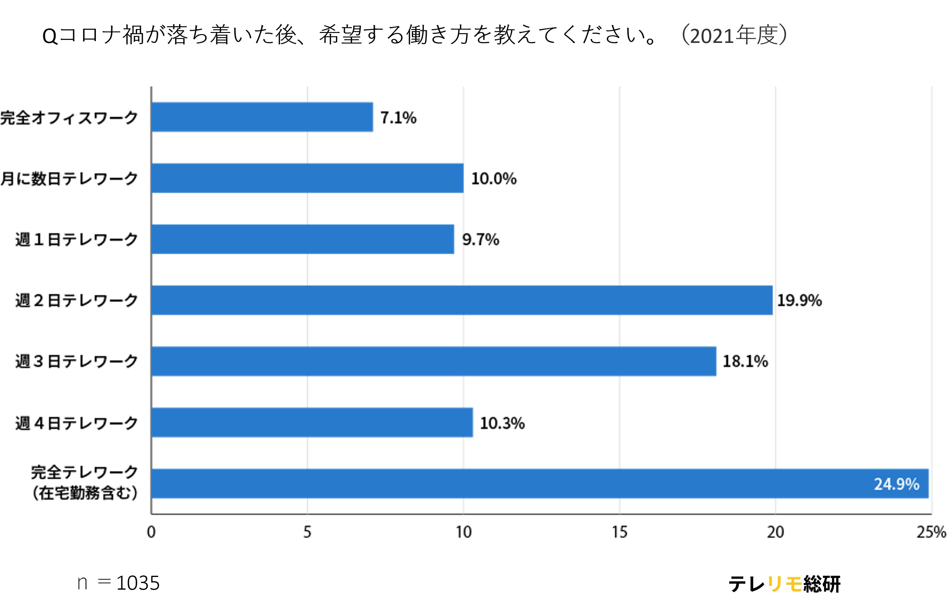 はじめに、コロナ禍の終息後にどのような働き方を希望するのかについて、アンケート調査を実施しました。