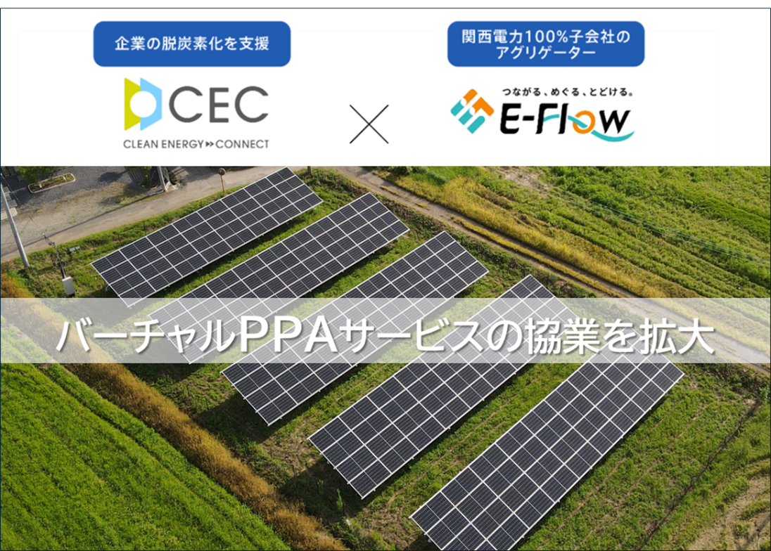 E-Flow、クリーンエナジーコネクトがバーチャルPPAサービスの協業拡大