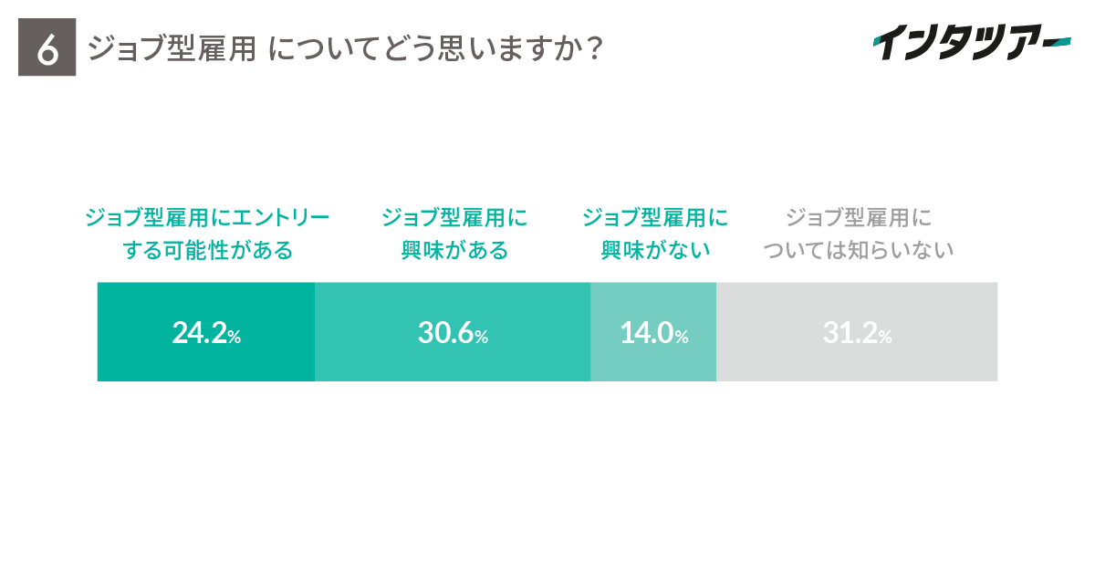 ジョブ型雇用への関心が高まっており、学生たちは早い段階で「仕事に関する情報」を求めています。グループ会社インタツアーの調査によると、希望の部署・職種でなければ内定を辞退する人が36%にのぼり、ジョブ型雇用に関心がある人が50%以上です。