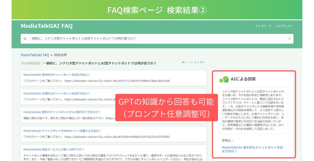 AI回答によって、FAQには登録していないが一般的な知識で回答が可能な質問に対して、