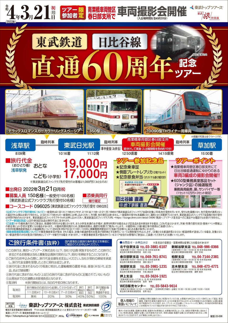 東武トップツアーズ、東武鉄道・日比谷線直通運転60周年記念ツアーを実施