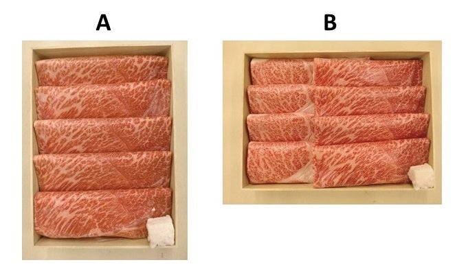 Aは柔らかい赤身の「モモ肉」、Bは風味豊かな「ロース、モモ肉」となっています。
