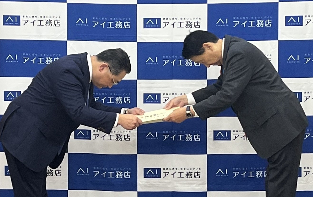株式会社アイ工務店(本社:大阪府大阪市、代表取締役社長:坂井 達也)は、2025年10月2日(木)、東大阪市役所にて東大阪市への寄付贈呈式および感謝状授与式を行いました。