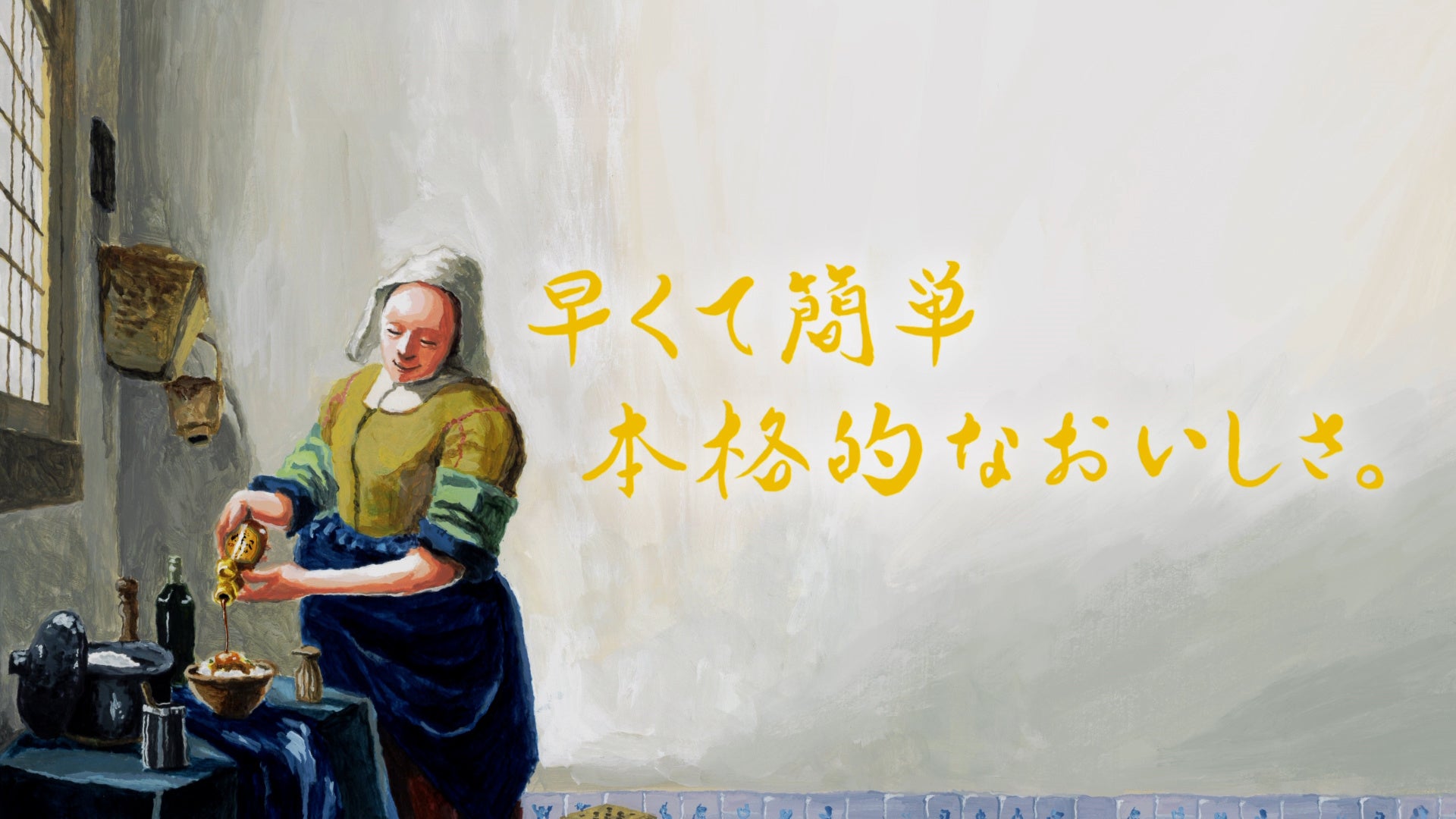 フェルメールの代表作「牛乳を注ぐ女」のオマージュ?! かどや製油WEBCM『ごま油を注ぎたい女』 7月29日(月)より放映