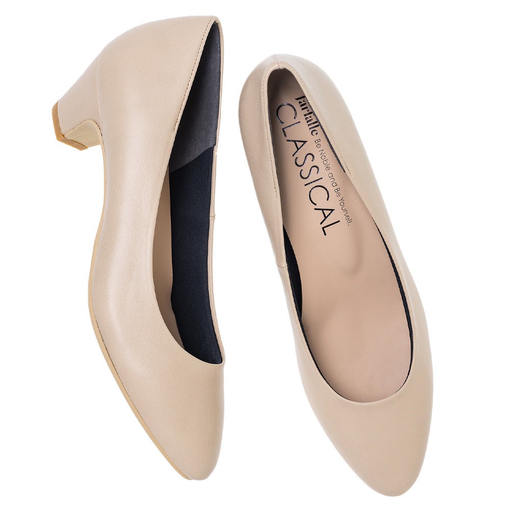 “記憶する靴“ファルファーレクラシカルは、三井化学のヒューモフィット(R)を世界で初めて靴で使ったパンプスレーベルで、体温でとろけて自重で足型が作れるのが特徴です。