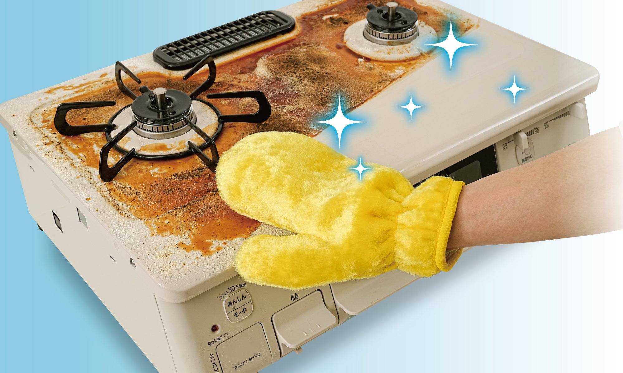 頑固な油汚れから網戸のほこりまで、お掃除が楽になる便利なミトン