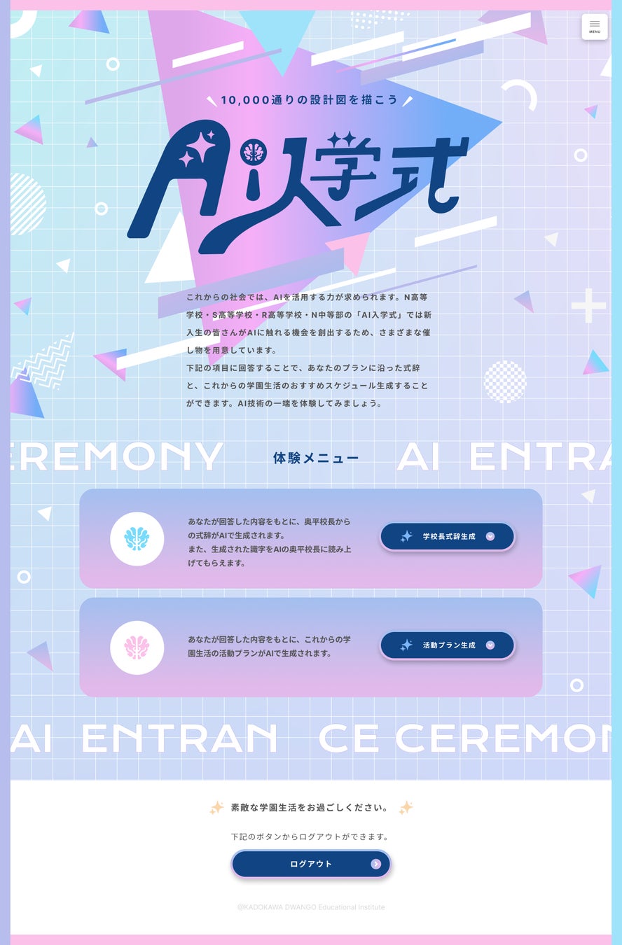 N高グループでは、最先端テクノロジーを学習に取り入れており、近年は生成AIの導入やAI関連の授業を生徒向けに実施しています。こうした取り組みの一環として、入学式でもAIに触れる機会を設け、生成AIを活用した新入生歓迎コンテンツを準備しました。