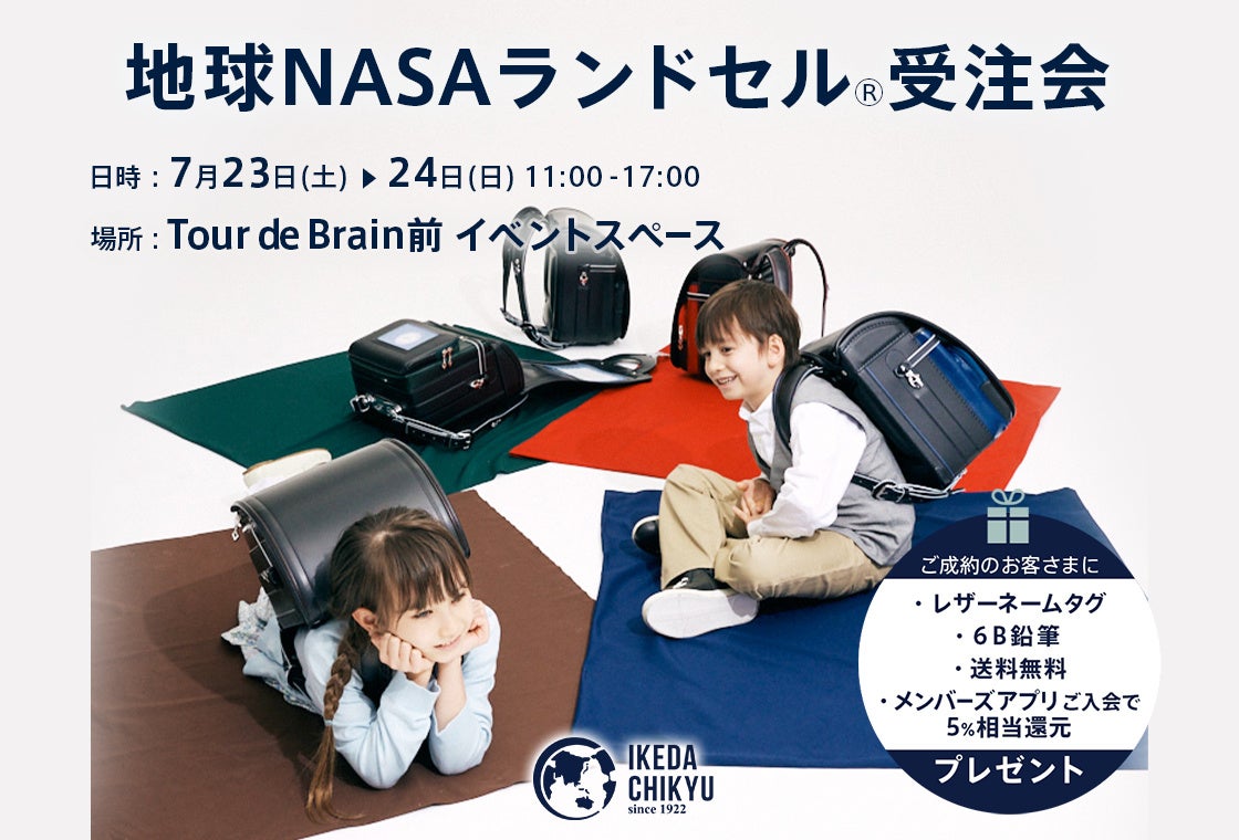 ランドセルの企画・販売を行う池田地球株式会社(本店:東京都港区:代表取締役 村尾光一)は、 7/23(土)・7/24(日) の2日間で、「Tour de Brain さいたまコクーン店」前のイベントスペースにて「地球NASAランドセル® 受注会」を開催いたします。