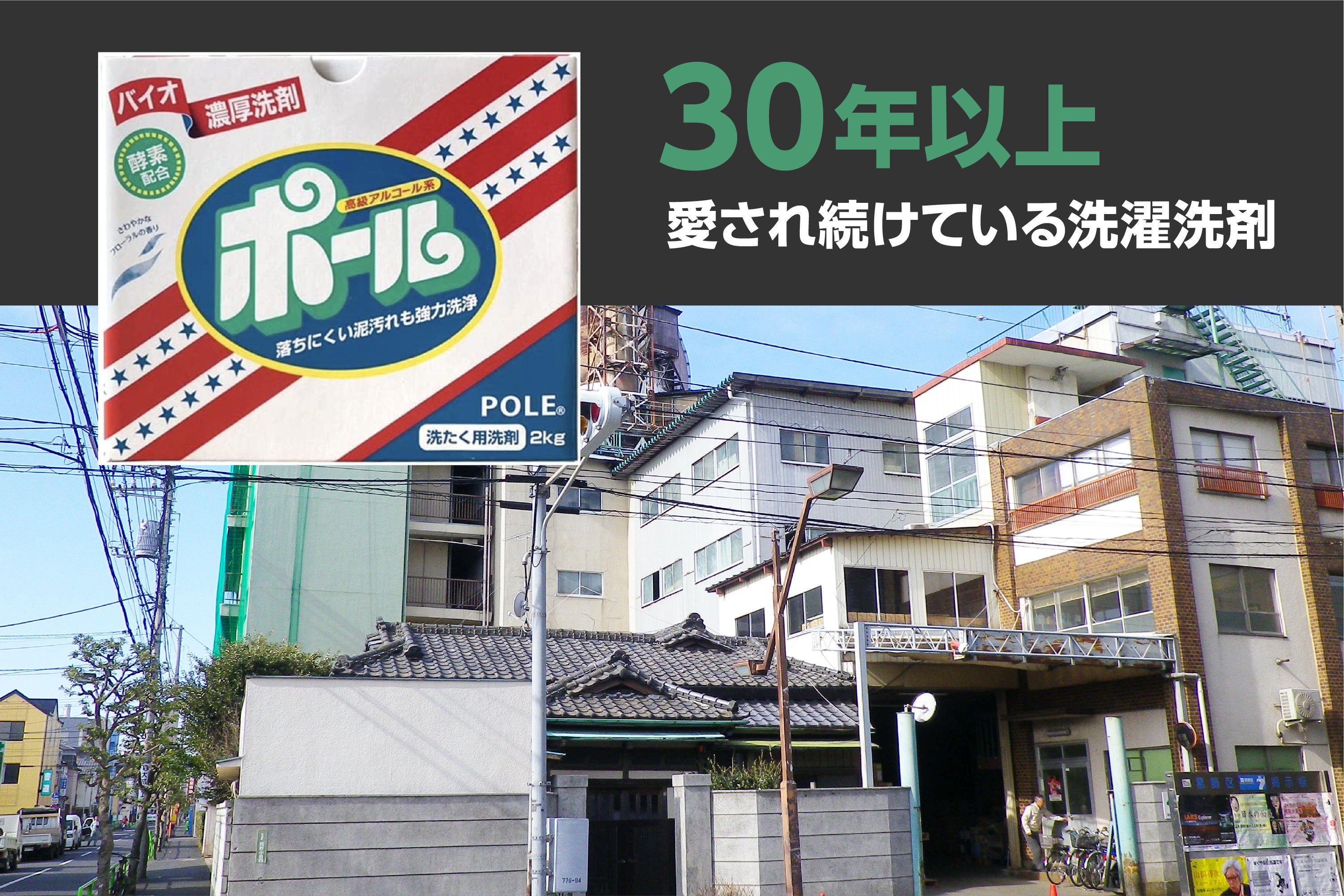ポールを製造するミマスクリーンケアは、東京都葛飾区で昭和32年に設立、固形石鹸の製造販売からスタートし、時代の変遷に合わせて昭和37年から業務用洗剤の製造を中心に続けておりました。特に受託製造を生業としながら粉末洗剤製造のノウハウを作り上げていき、約30年前当時のお客様からのご要望により、業務用粉末洗剤として開発したのがポールです。当時の社長(阿部光弘)が何とかお客様の期待に応えたいという一心で、社長自らが休日も工場に入って様々な原料を試し、汚れ落ちの確かな洗剤を作り上げました。「身を粉にして仕事をしているんだ」が口癖でしたが、まさにその通りで、全身粉まみれで工場で作業をしている人でした。