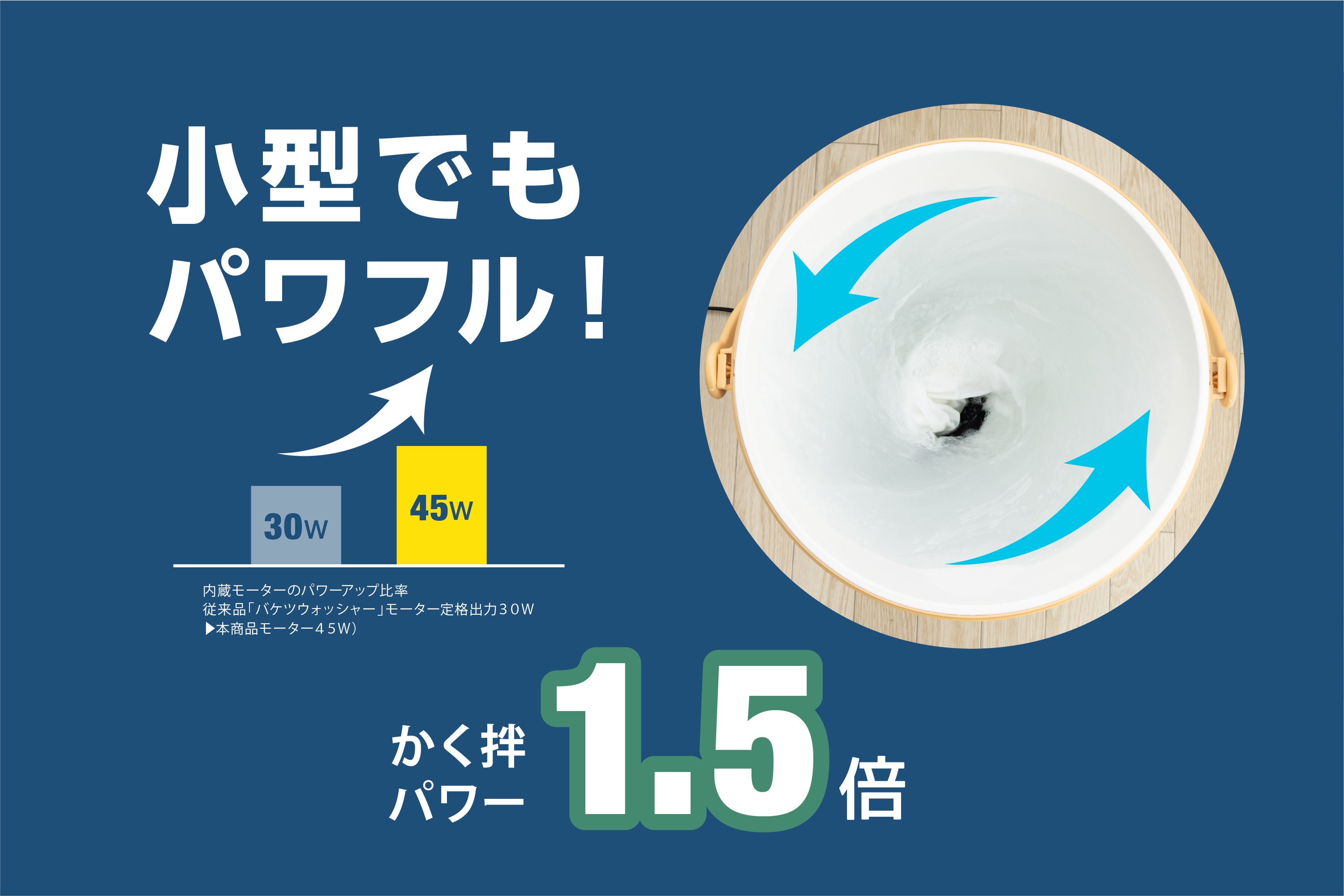 従来品と比べ、かく拌パワーが約1.5倍になり、頑固汚れにも絶大な効果を発揮します。