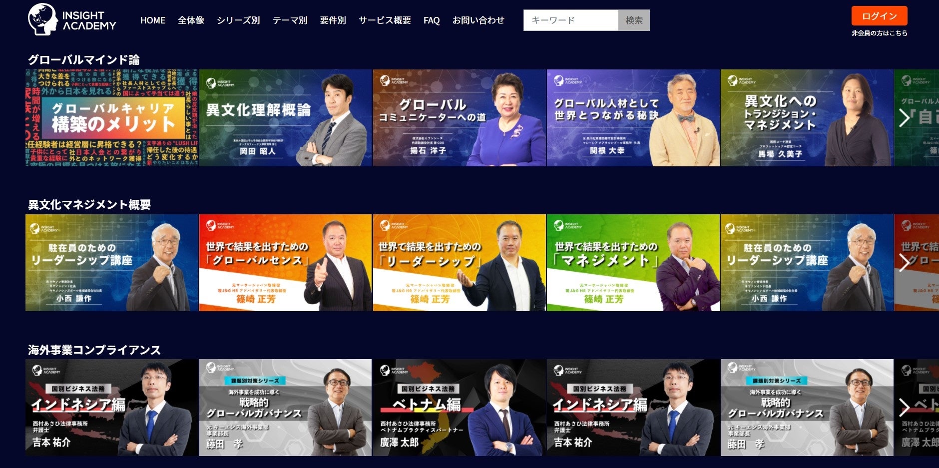 嘉章)は、グローバル人材育成特化型eラーニングサービス「INSIGHT ACADEMY」の講座一覧をWebサイトで公開したことをお知らせします。