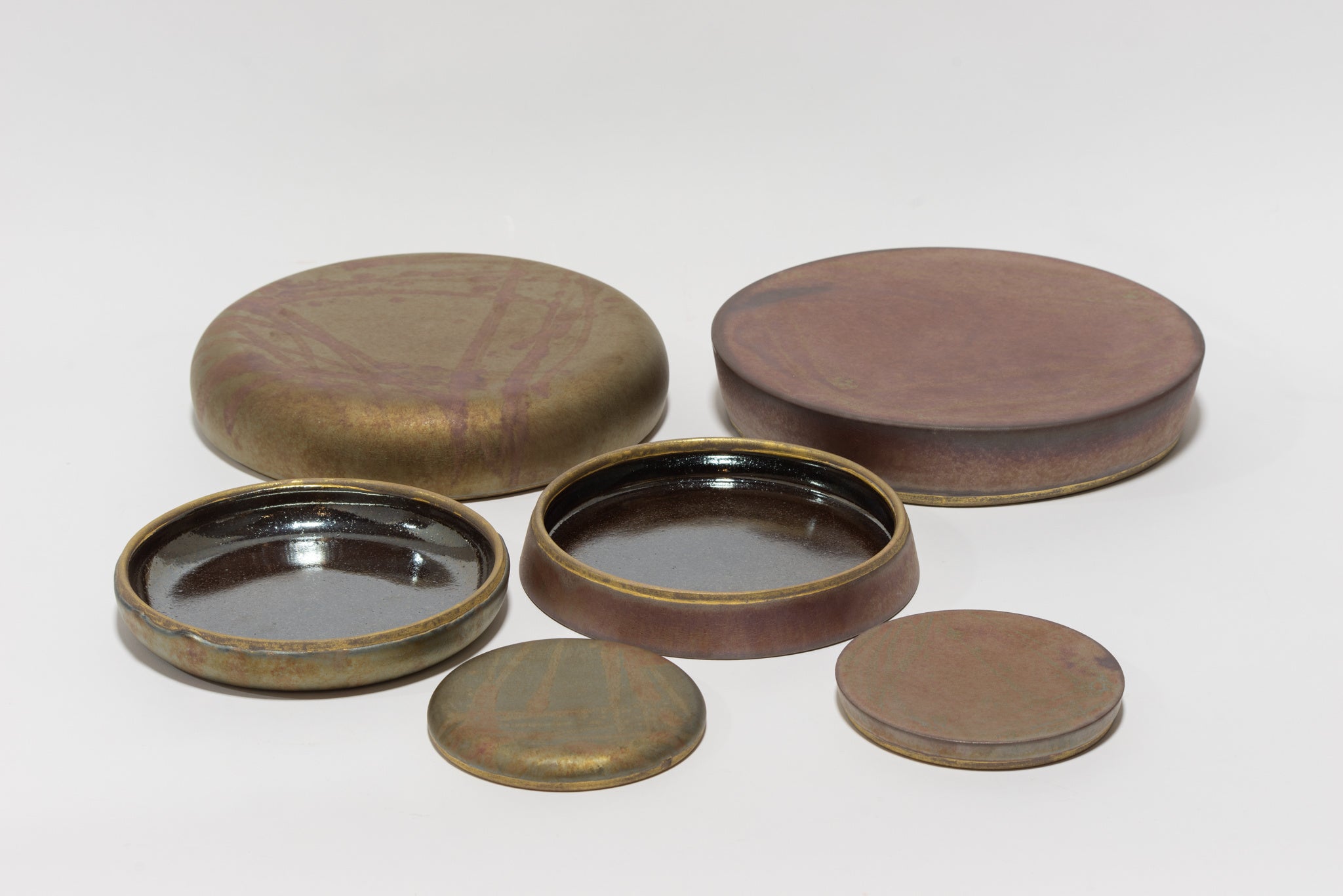 京焼・清水焼|虹彩霧滴流描組皿鉢(こうさいむてきながしがきくみざらばち)