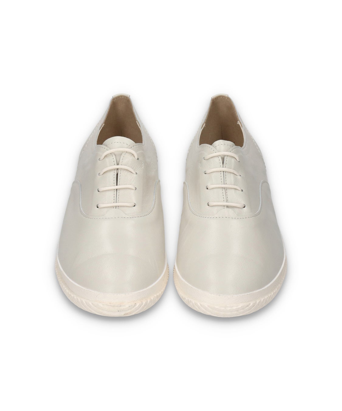 春は新生活のスタートや行事・式典の場など、TPOが求められる着こなしが多い季節です。今回、SPINGLEからそんな女性へ向けて発売するのが「SP-1833」です。元々男性用フォーマルシューズのデザインだった内羽根(紐を通す羽根の部分が内側に縫い付けられたデザイン)仕様のプレーントゥは、マニッシュなデザインのため春の新生活スタートや、行事・式典の場といったオケージョンスタイルはもちろん、春めくカジュアルスタイルにも幅広く合わせられます。足当りの柔らかいカンガルーレザーをアッパーに使用し、通常よりも広いワイズの木型を採用することで包み込むような履き心地を実現。アウトソールには6㎜のウエッジヒールを採用することで接地面積が広く安定し、程良く厚底のためスタイルアップ効果も望めます。