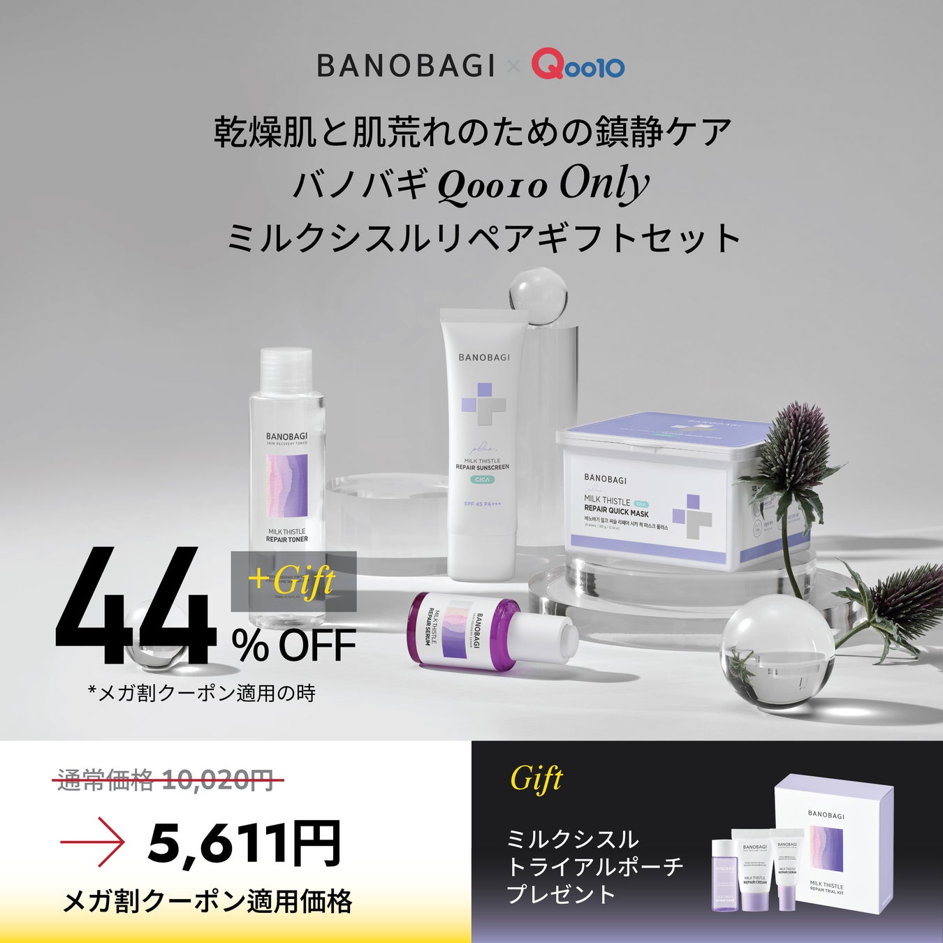 正しいダーマ、バノバギコスメティック(BANOBAGI Cosmetic)がグローバルショッピングプラットフォームQoo10で開催される今年最後のショッピング大イベント、メガ割にてバノバギの人気商品とメガ割限定セットを最大50%割引で販売いたします。