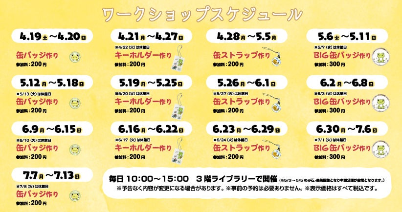 ◆ワークショップメニューに『かえるのピクルス』のイラストが登場!