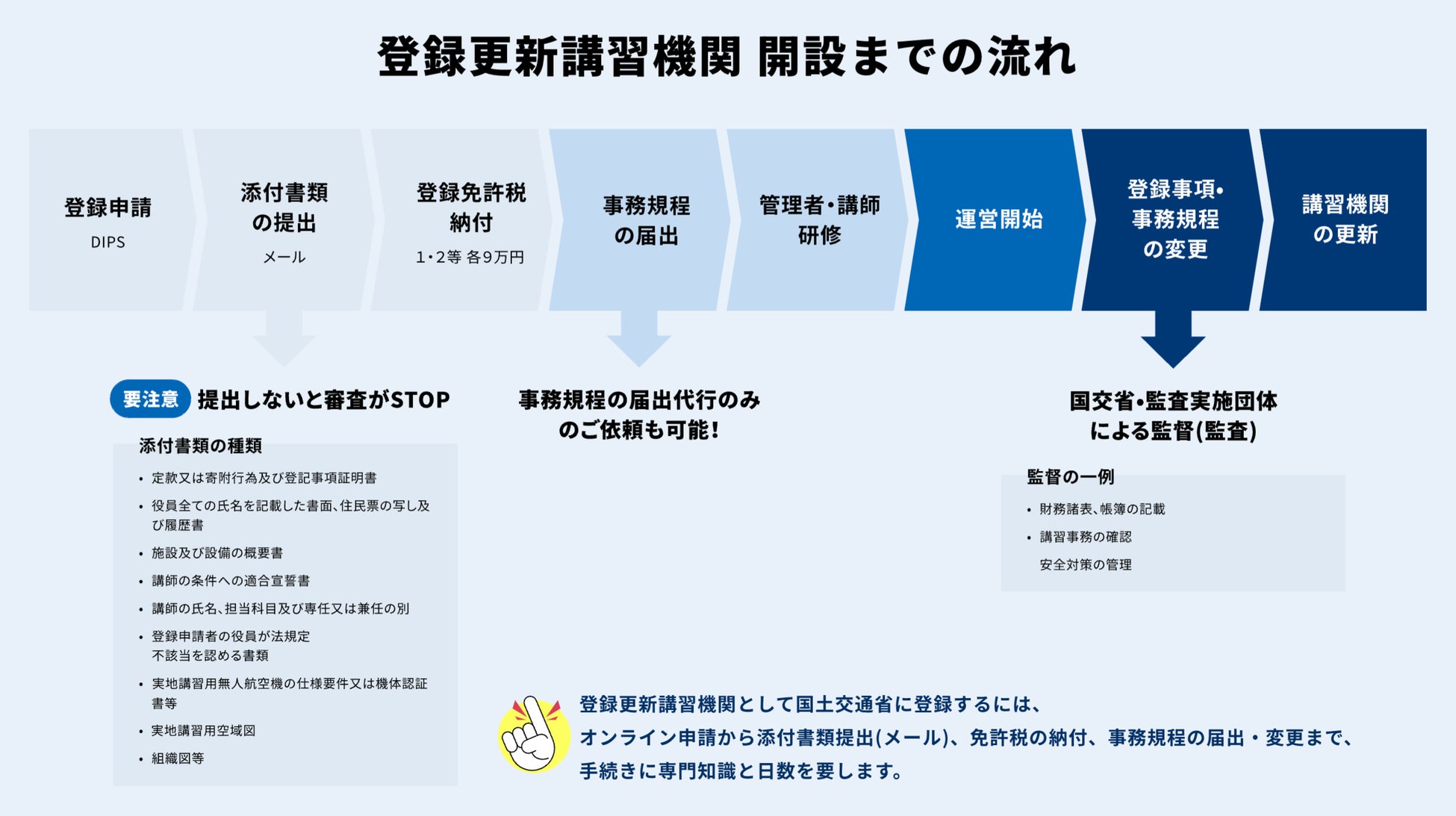 ドローン専門の行政書士が登録更新講習機関の開設から運営までサポートいたします!