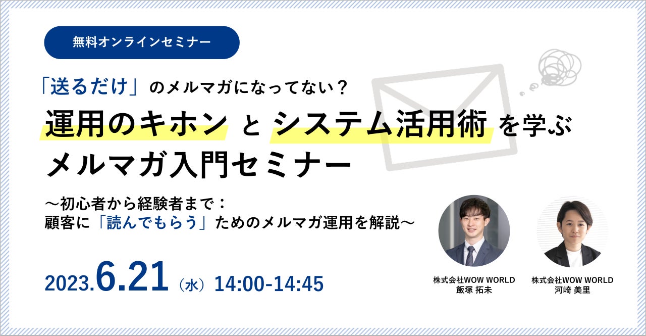 無料オンラインセミナー「『送るだけ』のメルマガになってない?運用のキホンとシステム活用術を学ぶメルマガ入門セミナー」6月21日(水)開催のお知らせ