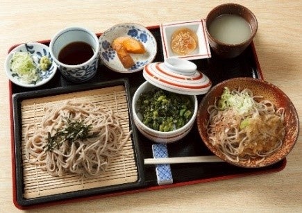 おろしそばにソースカツを組み合わせた「福井県人セット」(920円)が人気だが、極味膳の「大名ヘルシー蕎麦」(1,180円)も県外客を中心に注文がある。ざるそばとおろしそば、それに大根の葉に味噌をあえた菜めしが付く。「(極味膳は)不思議と、ひとつ注文が入ると続けて入るの」と辰巳さん。