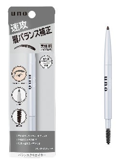 面接当日の仕上げは、第一印象において大切な眉のバランスを補正するアイブロウです。「ウーノ バランスクリエイター」を使用しました。中村氏からは「眉は表情筋と関係のあるパーツ。眉が見えないとその人がどういう気持ちなのか伝わりづらくなります。眉が隠れているのがダメな時代ではないですが、眉が見えていると、面接においてもコミュニケーションがしやすくなります」とのコメントがありました。使い方として、「まず2mmほど芯を出します。unoのアイブロウは涙型になっているので、1本ずつ足したい時には細いほう、全体的に濃くしたい時には太いほうを使うと良いです。まず、まず毛流れを最初に整えると足りない部分が分かります。全体に書く必要はなく、足りないところに書くだけでも第一印象はアップします。練習は必要ですので、就活当日にやるのではなく、事前に練習して自分なりのベストを見つけるのがポイントです」とアドバイスしました。