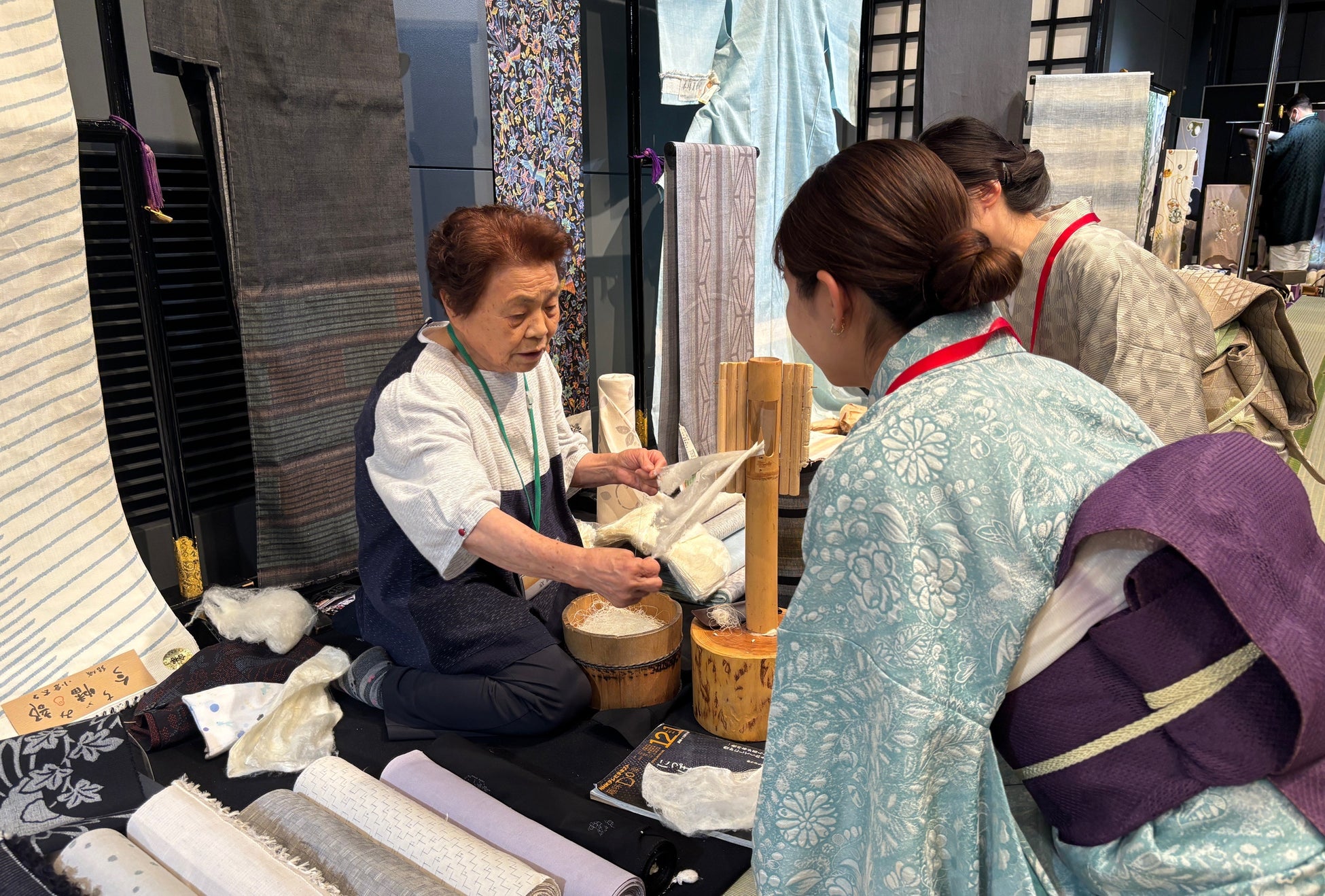 会場には産地から職人さんも来場。きものの夢をつないできた伝統技術を間近で眺めたり、直に説明を聞いたりできる貴重な体験も好評でした。