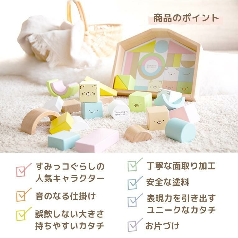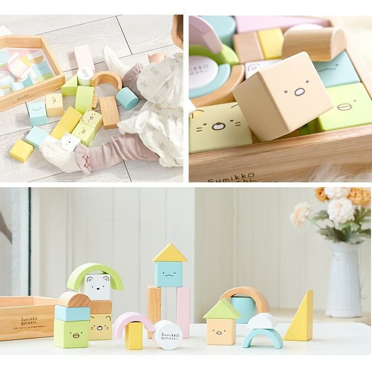たくさんの子ども達に愛されている「すみっコぐらし 」の人気キャラクターが、赤ちゃんが楽しめる積み木になりました。
