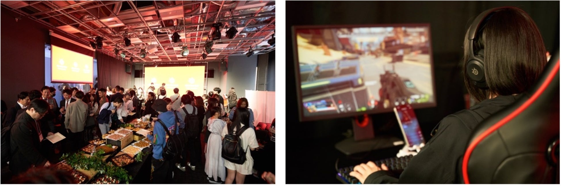 新製品「Arctis Nova 5」の展示やタッチアンドトライブースを設置。商品体験や撮影など一夜限りの特別な場所を用意しました。メディア関係者、インフルエンサー、プロゲーマー、ストリーマーをはじめとした業界関係者150名以上が参加し、ブランドパーティは盛大な盛り上がりを見せました。