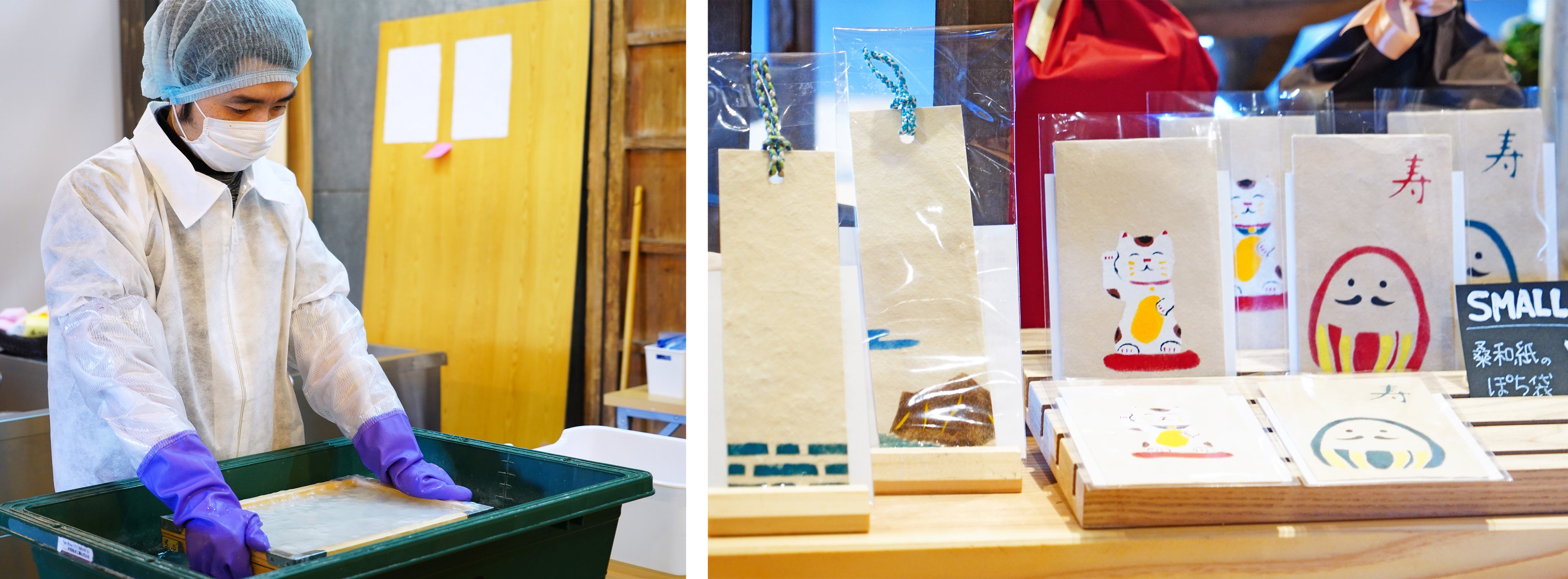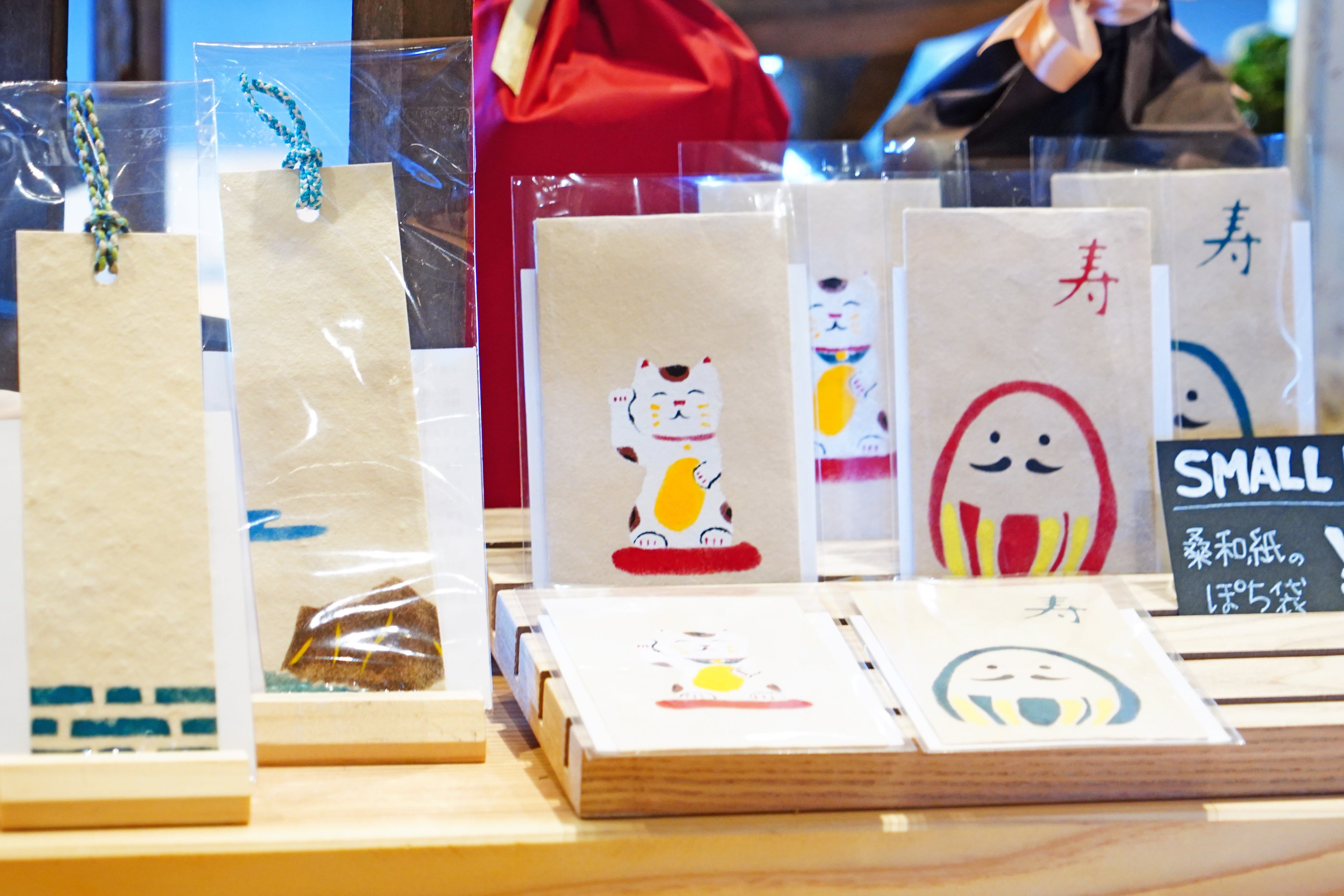 和紙はハガキや栞に加工し、Merci Cocon & Caféのショップなどで販売しています。