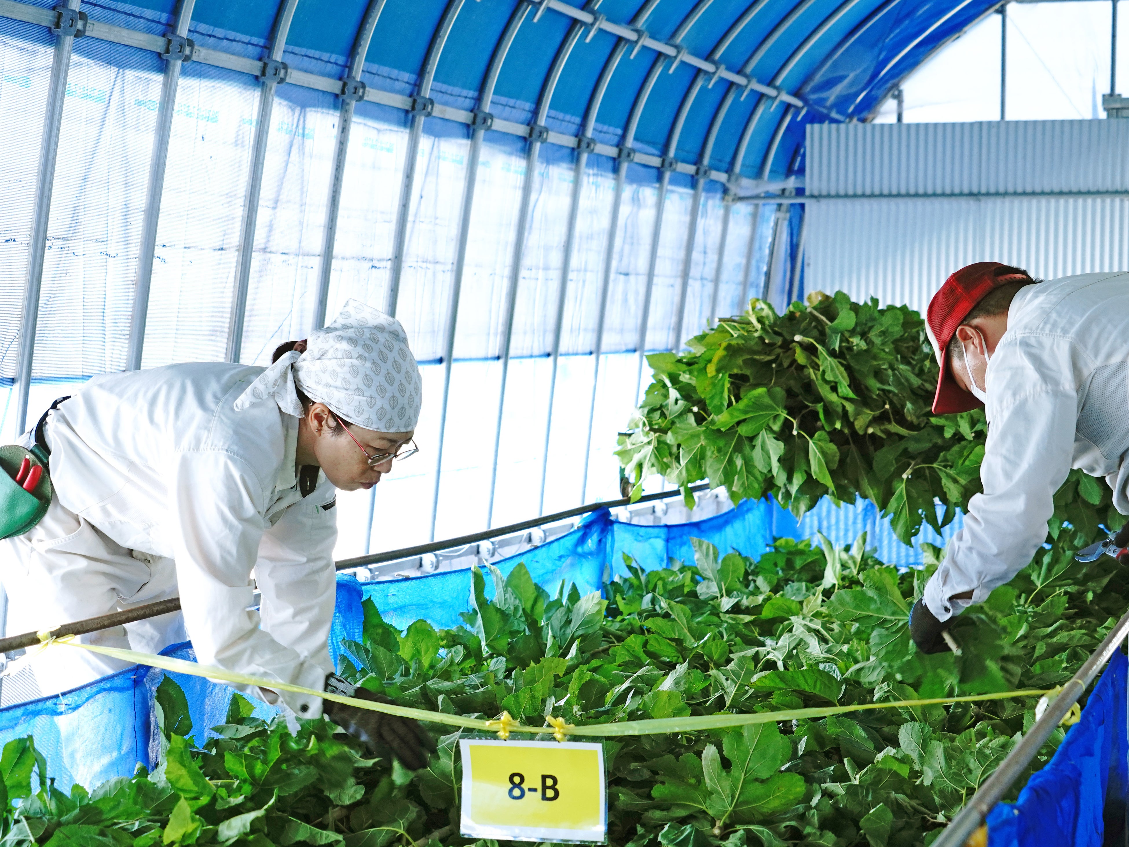 そのため、経験や知識のない社員にも供給量がわかるよう、蚕をグループに分け重量を算出。グループごとに、成育を管理し、桑の葉が過不足なく均等に行き渡る工夫をしています。