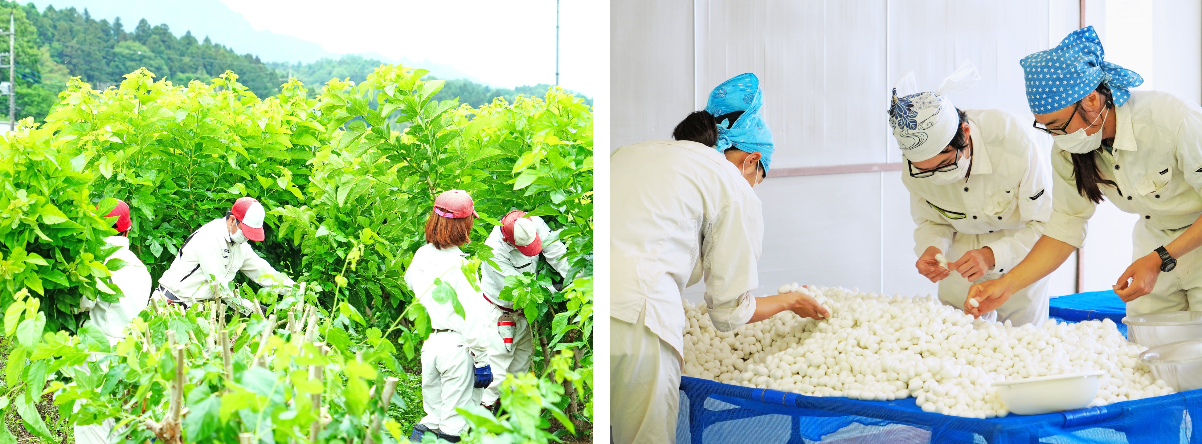 高齢化が進み、担い手不足が課題となっている養蚕業の活性化と、障害者の新たな就労機会の創出を目指し、2017年群馬県富岡市にとみおか繭工房を開設。工房では、養蚕技術を次世代に継承すべく、蚕の飼育や市内の耕作放棄地を借り受け、3ha超の桑園管理、道具のメンテナンスなど養蚕に係る一連の作業を行っています。