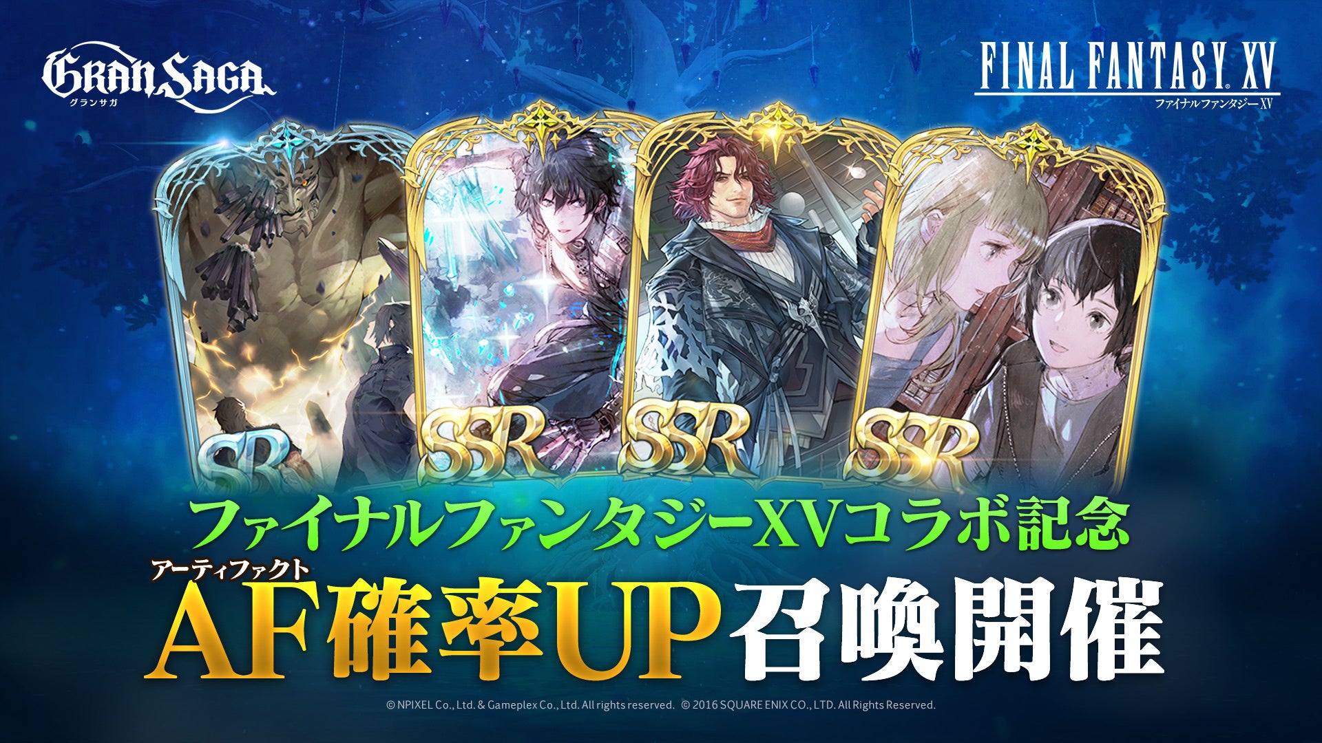 ファイナルファンタジーXVコラボ限定のグランウェポン、アーティファクト、ガーディアンの登場と確率UP召喚イベントの実施など、コラボ期間限定の特別なイベントを多数開催しておりますので、ぜひご参加ください!