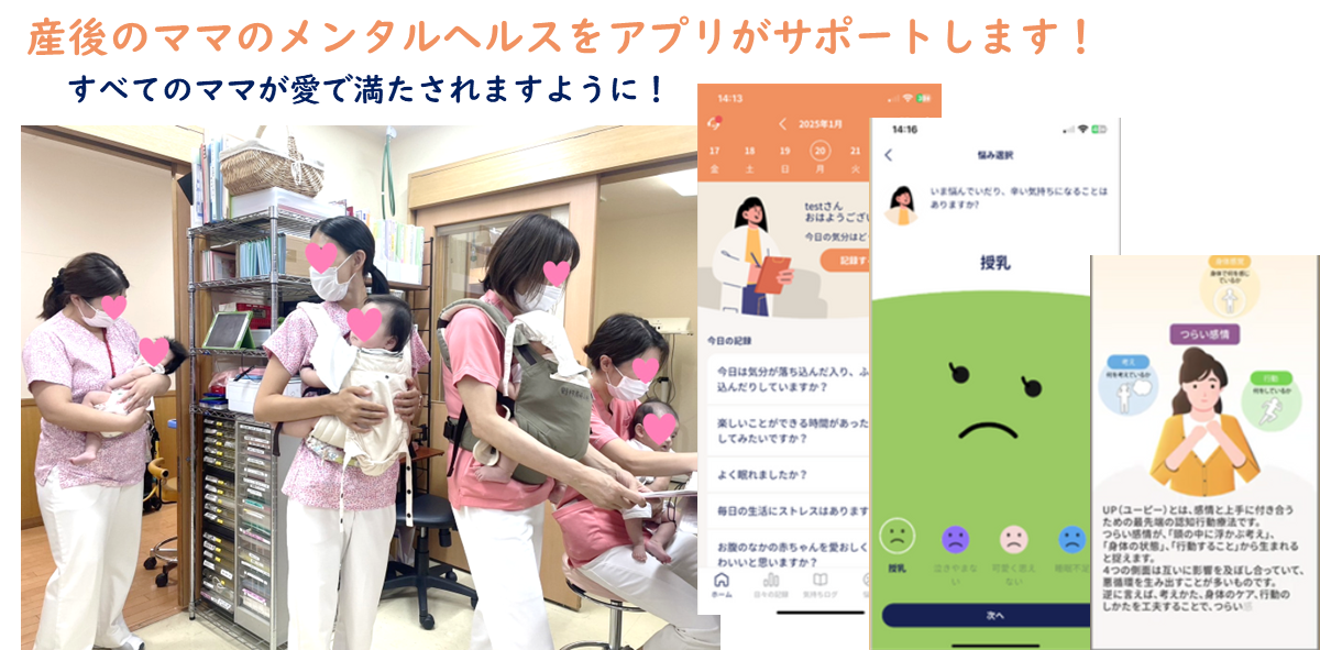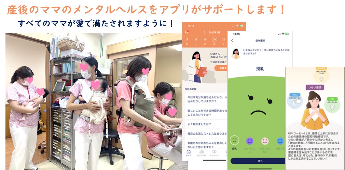 本アプリは、2024年から2025年に国立精神・神経医療研究センター(NCNP 認知行動療法センター)との共同研究により、妊産婦60名を対象とした医師介入型の臨床試験(ユーザビリティ試験)を行い、非常に高い継続率が得られ、授乳や育児の悩みに役立つコンテンツや、日々の気分記録により自己理解や振り返りに役立ったとの声が多く寄せられました。これらのフィードバックをもとに、ママが一人で悩まず安心して育児と向き合えるアプリの提供をめざします。
