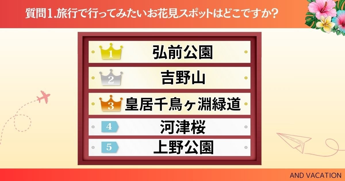 そこで、旅行で行ってみたいお花見スポットをアンケートで聞き取り調査をしました。ぜひ、チェックしてみてください!