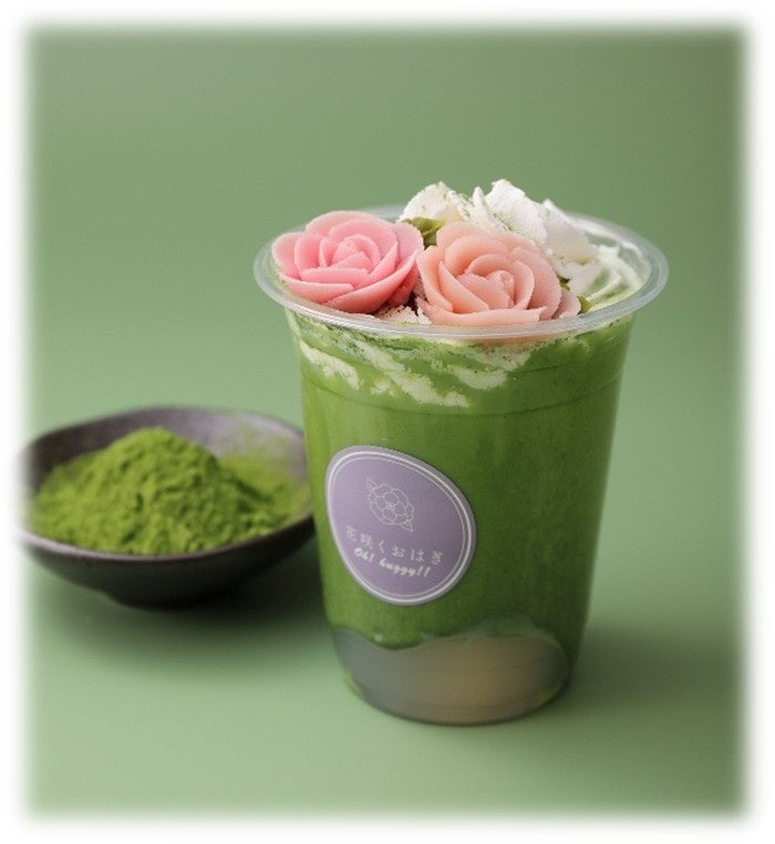 「花咲くわらび餅ドリンク」は、抹茶ラテやほうじ茶ラテにわらび餅を加え、ホイップクリームと餡フラワーで華やかに仕上げた贅沢な一杯です。