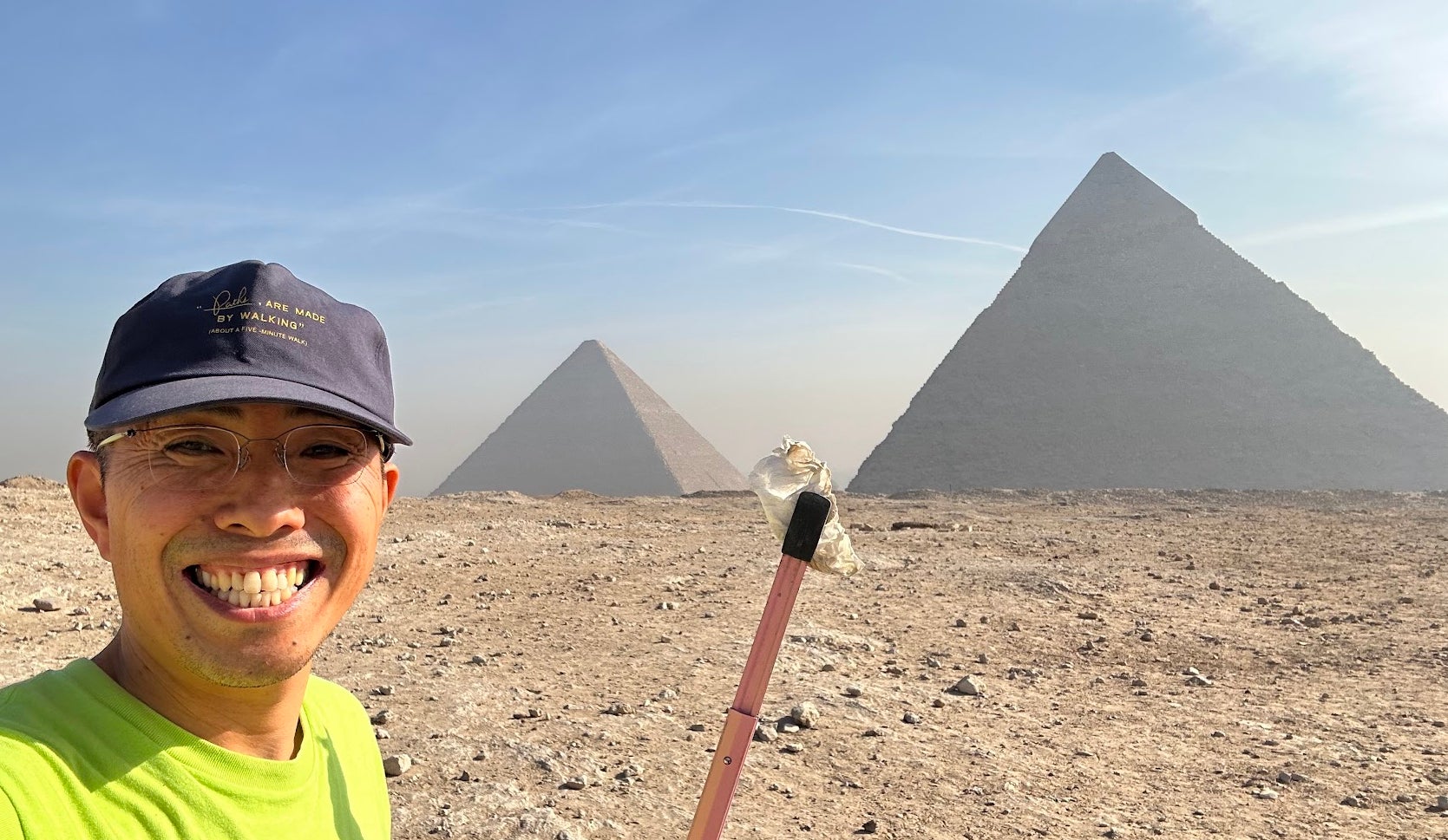 2024年12月に旅行した世界遺産の宝庫であるエジプトでも、各地のピラミッドや神殿でゴミ拾いを実施。今注目でグランドオープン間近の大エジプト博物館でももちろんゴミ拾い。愛用のトングを使いゴミ拾いをする吉川に観光客だけでなく、地元の修学旅行生からはプレゼントをもらう一幕も。