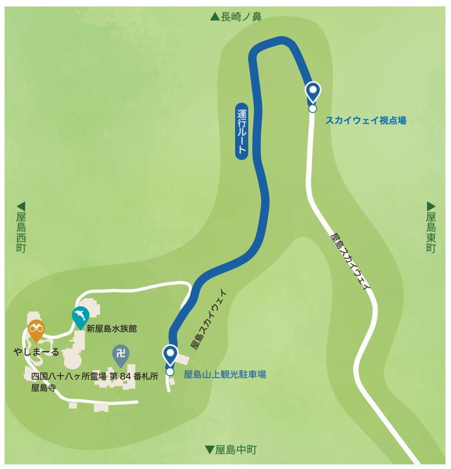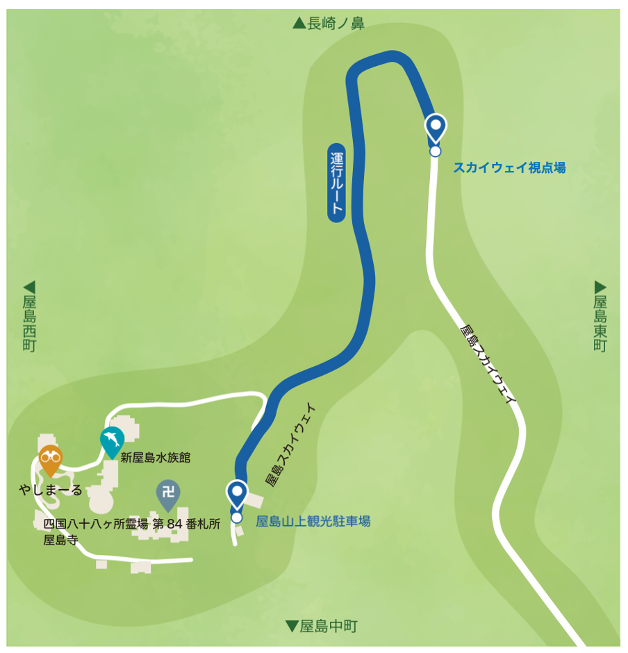 ※2 バス停は屋島山上観光駐車場の1カ所です。スカイウェイ視点場から乗車することはできません。